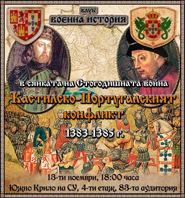 Каним ви да се запознаете с един по-малко известен конфликт, който до голяма степен предопределя бъдещето на Иберийския полуостров през Ренесанса. Лектор: Манол Глишев Вторник, 13 ноември, 18:00 ч. Ректорат на СУ, ет. 4, 83 аудитория Заповядайте!