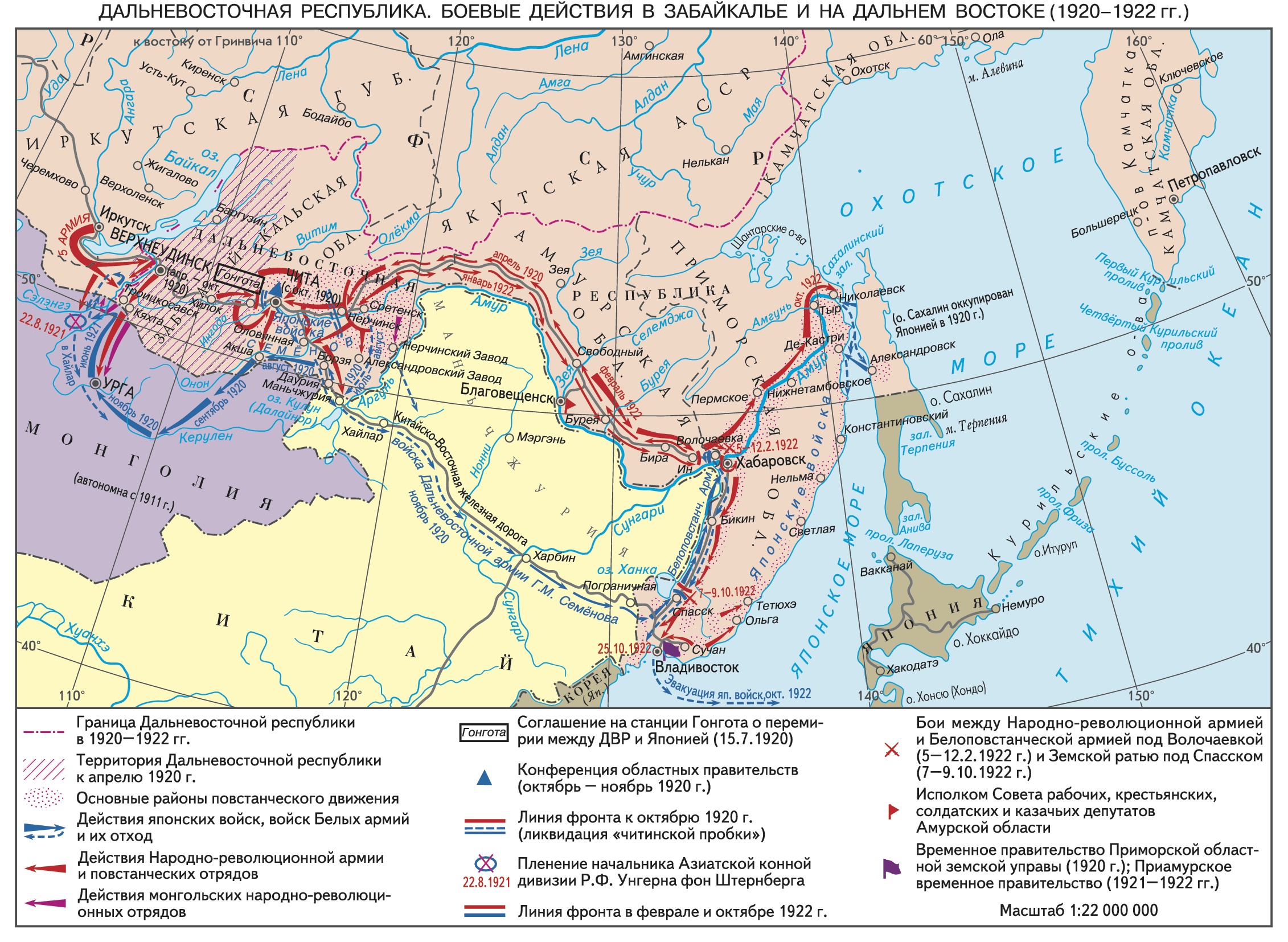 Това се оказва печеливш ход, защото японците признават новата държава (която е независима само на хартия и получава материална помощ от РСФСР) и решават да изоставят Семьонов заради безчинствата му. Решението им е продиктувано от няколко фактора – на 1 април американците се изтеглят от Сибир и те остават сами в региона, въпреки че до тази момент общия брой японски войници в Далечния изток е около 70 000. Червеното партизанско движение заедно с елементи на червената армия извоюват редица победи срещу Семьонов, Колчак и Щернберг.