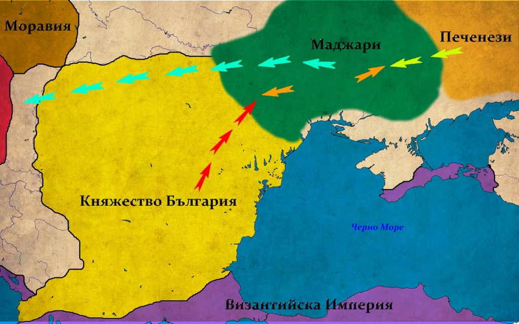 През 894 г. българските войски, водени от младия княз Симеон нанасят поражение на ромеите в Одринска Тракия. Това предизвиква страховете на ромейския император Лъв VI Философ от евентуална българска атака срещу Константинопол. За да предотврати продължаването на българското настъпление, ромейската дипломация по заповед на василевса, предприема експедиция на север при маджарските племена, които обитават териториите около североизточната българска граница.