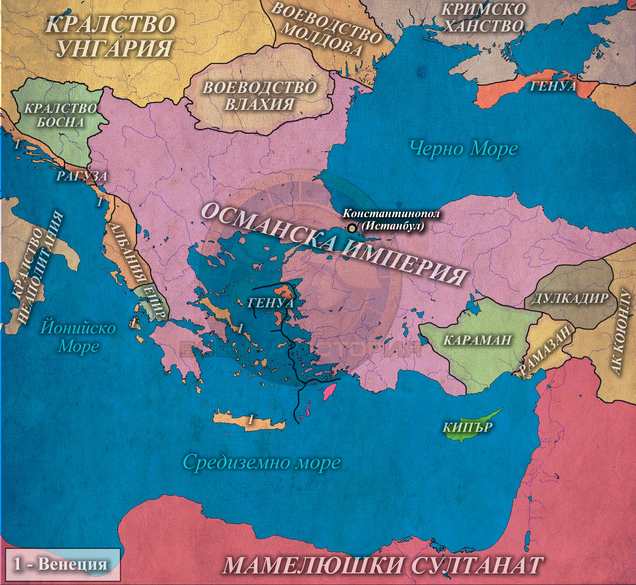 Османската държава и Балканите около 1402г.Османската империя в 1460г.Османската империя в 1517г.Османската империя в 1550г.Османската империя в териториалния си зенит – 1680г.Османската Империя след Карловац (1699г.) и Константинопол (1700г.)Османската империя и нейните съседи, 1850г.